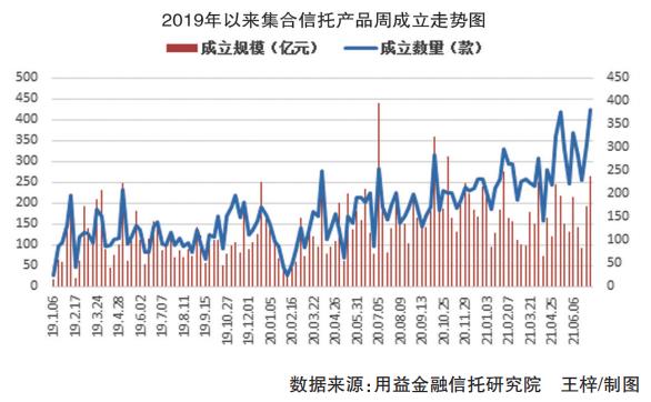 7月5日,用益信托发布了《用益集合信托产品周评(6月28日-7月5日)》(以下简称《周评》)。《周评》显示,该周共有383款集合信托产品成立,成立数量达近两年最高。