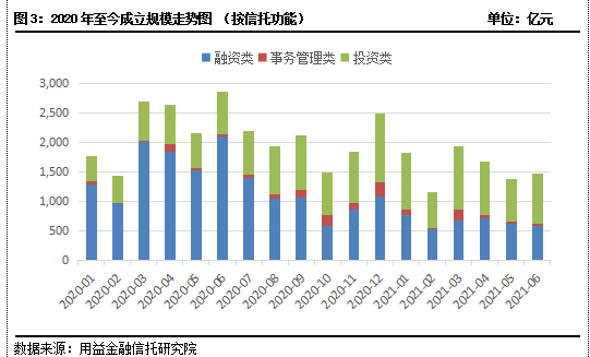 图:2021年1月-6月各资金投向集合信托产品成立情况(单位:亿元)